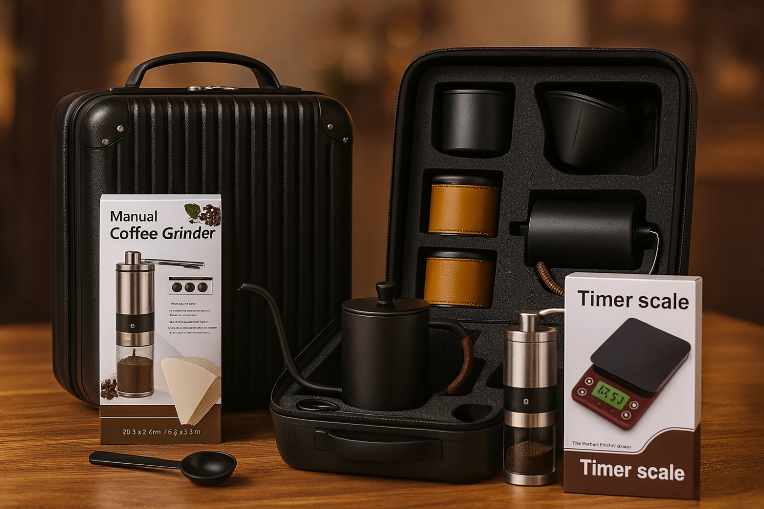 The 10 in 1 V60 Specialty Coffee Brewing Kit is the perfect all-in-one set for coffee lovers who want to enjoy premium pour-over coffee anywhere. Designed with durable materials and neatly organized in a protective travel case, this kit includes everything you need—from grinding fresh beans to brewing the perfect V60 cup. Whether you're at home, the office, or outdoors, this set delivers consistent flavor, precision, and convenience. With a digital scale, manual grinder, V60 dripper, and more, it’s your complete solution for specialty coffee brewing.