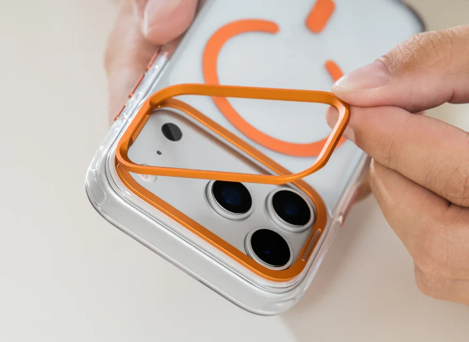 The SwitcEasy LenStand M Case is designed for flexible functionality and strong protection. Featuring a foldable stand with a 60° adjustable hinge, it supports both portrait and landscape orientations without disrupting daily use. Reinforced with raised edges and a sturdy metal lens frame, it keeps your screen and camera safe from scratches and impact. Certified with U.S. military-grade 10-foot drop protection, it ensures durability and peace of mind. The built-in magnetic ring enables full compatibility with MagSafe accessories, while the precise cutouts maintain smooth camera control and comfortable handling.