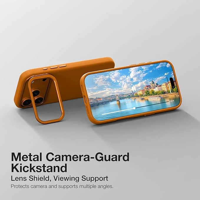 • Built-in metal camera-guard kickstand for lens protection and hands-free viewing