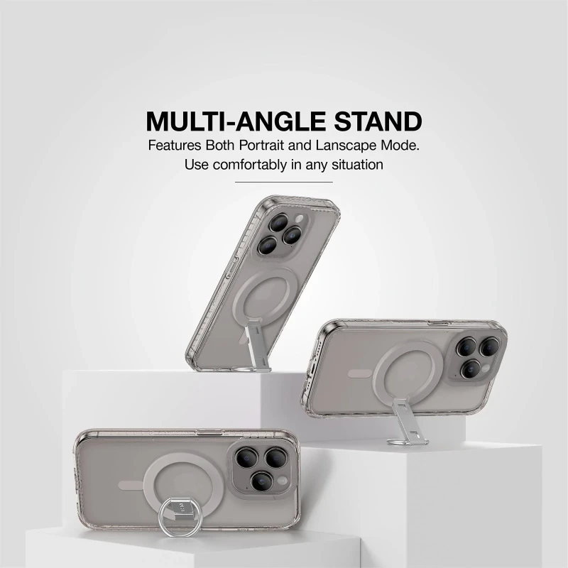 Built-in multi-angle stand for both portrait and landscape use