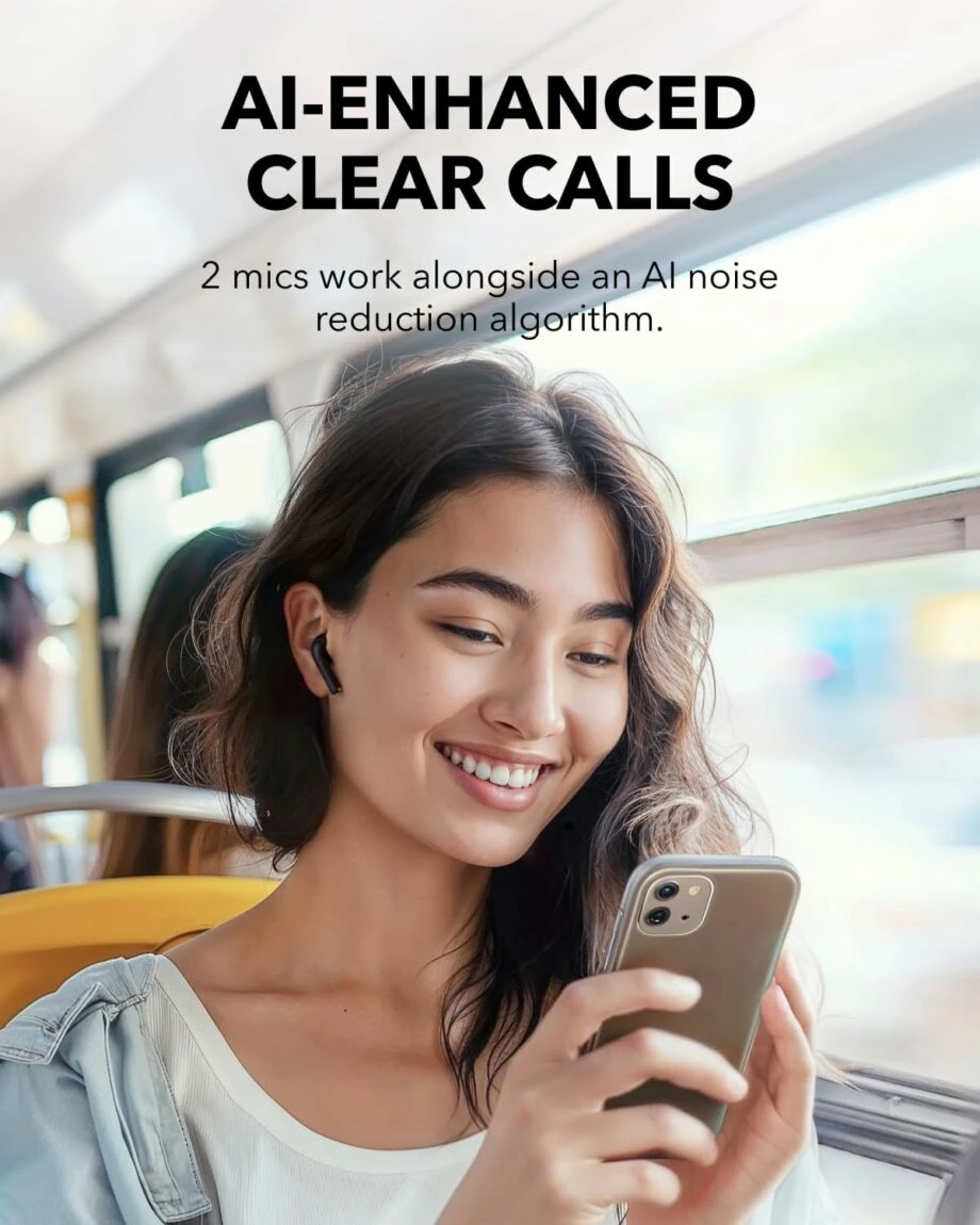 Clear Call Quality: soundcore K20i earbuds feature AI-powered noise reduction technology that precisely isolates your voice from background noise. With dual-mic ENC, maintain pristine call clarity even in bustling environments.