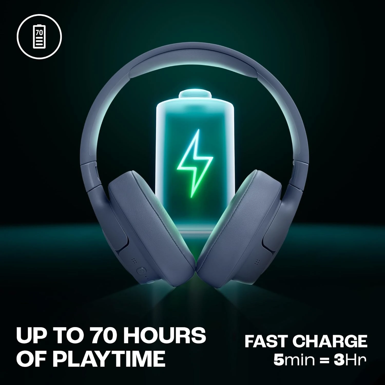 Up to 70 Hours Battery Life (44H with ANC on)