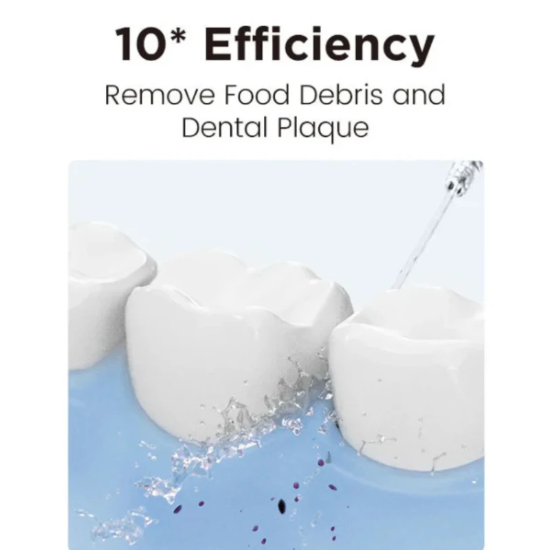 Removes food debris and dental plaque with up to 10x more efficiency.