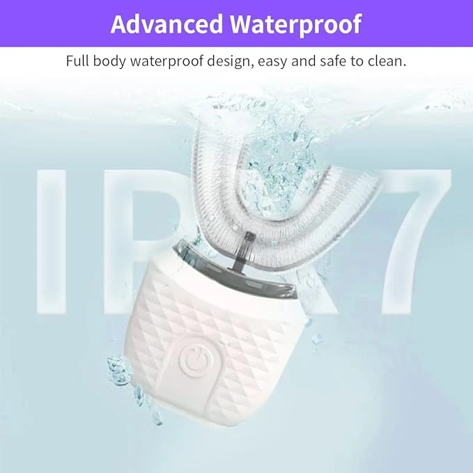 The Fully Automatic Massage Whitening Toothbrush (MY-116) combines advanced ultrasonic cleaning with comfort and whitening features. Its 2-in-1 ultrasonic cleaning system vibrates up to 30,000 times per minute, removing stubborn stains and ensuring deep oral hygiene that traditional brushes can’t achieve. The integrated blue light whitening technology helps brighten teeth while keeping your breath fresh. With 360° food-grade silicone double-row bristles, it provides gentle gum care and an effective clean without irritation. Three modes — Care, Deep Clean, and Massage — cater to different needs. The U-shaped design fits most mouths for effortless use, and the USB rechargeable battery offers cordless convenience. Compact, waterproof, and portable, it’s ideal for both home and travel use.