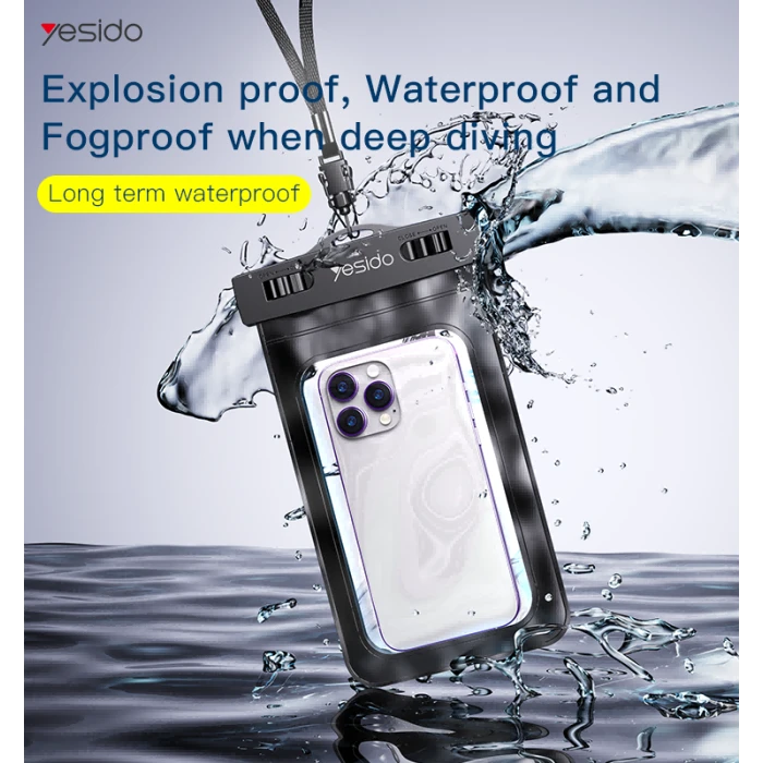 The Yesido WB10 is a portable waterproof phone case designed to protect your mobile device during water-based adventures. With IPX8 certification, it ensures your phone stays dry even when fully submerged. Made from durable ABS and PVC materials, the case includes an air-bag frame that helps it float on water. The transparent front allows direct touchscreen interaction without removing the phone, and it comes with a necklace strap for hands-free wearing.