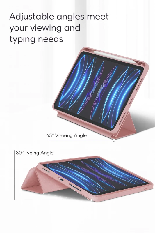 Stable tri-fold stand with adjustable angles for viewing and typing