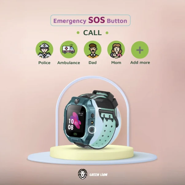 Green Lion Kids Smart Watch Series-5 is a practical smartwatch made for kids, combining everyday connectivity with safety-focused features. It includes a clear 1.44" display, Micro SIM support for two-way calling, and SOS alerts for quick help when needed. With AGPS and LBS location tracking plus a trace function, parents can stay updated, while the built-in HD camera adds fun for capturing moments.