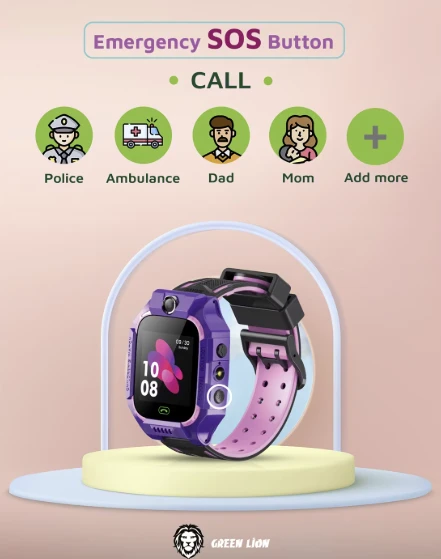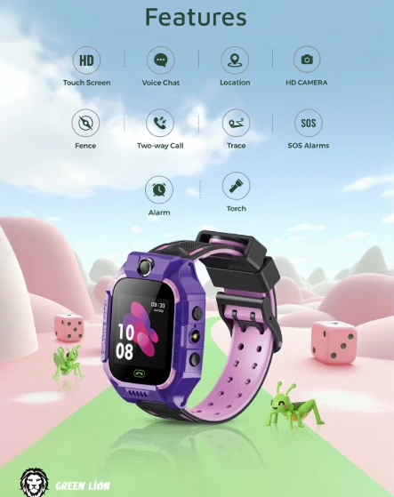 Green Lion Kids Smart Watch Series-5 is a practical smartwatch made for kids, combining everyday connectivity with safety-focused features. It includes a clear 1.44" display, Micro SIM support for two-way calling, and SOS alerts for quick help when needed. With AGPS and LBS location tracking plus a trace function, parents can stay updated, while the built-in HD camera adds fun for capturing moments.