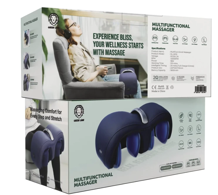 The Green Lion Multifunctional Massager is designed to deliver focused relief and relaxation to your arms, knees, and legs. This massager provides effective, long-lasting performance thanks to its strong 1800mAh battery. With its 18W of power, it guarantees powerful, efficient massage therapy for calming muscles.