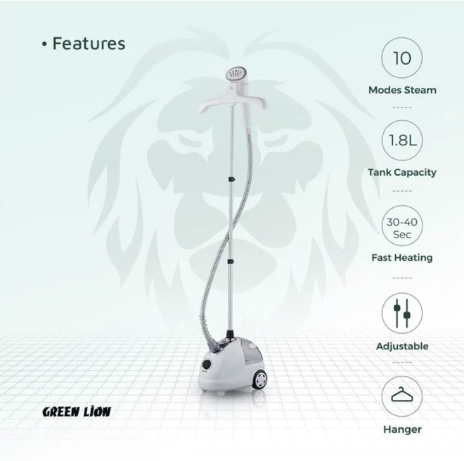 The Green Lion Portable Household Garment Steamer delivers powerful and versatile steaming for all fabric types. With 10 steam modes and fast heating in just 30–40 seconds, it ensures your clothes are wrinkle-free in no time. The 2000W power output and 35g/min steam flow effectively remove wrinkles while the 1.8L removable water tank allows longer use without frequent refills. A built-in hanger makes steaming and hanging clothes easy, and the 98°C steam temperature not only smooths fabric but also sterilizes for added freshness.
