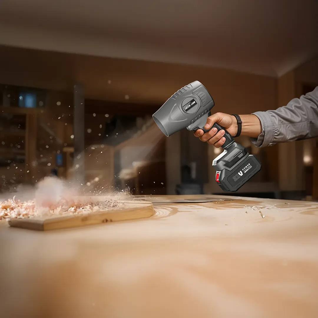 The Green Lion Storm Jet Cordless Blower is a high-performance, portable cleaning tool designed for efficient debris removal in outdoor settings. Constructed from durable nylon and rubber plastic, it ensures both longevity and user comfort. Powered by a robust 1000W brushless motor, the blower achieves an impressive wind speed of 100 m/s and a thrust of 1 kg, making it suitable for demanding outdoor tasks. Its 21V, 4000mAh detachable battery provides cordless convenience, delivering up to 15 minutes of continuous operation after a full 4-hour charge via the DC port. The blower's 80mm 12-leaf turbo fan, reaching up to 36,000 RPM, generates powerful airflow for maximum efficiency. Lightweight and easy to handle, the Green Lion Storm Jet Cordless Blower is ideal for quick clean-ups in gardens, driveways, and patios.