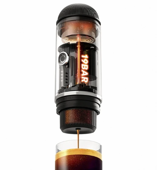 The ME2218 Portable Espresso Maker by iCafilas is a compact and versatile coffee machine designed for on-the-go espresso enthusiasts. It features a 19-bar pressure system, ensuring rich and flavorful espresso shots. The device is compatible with both hot and cold water, offering flexibility in preparation. Its 2-in-1 design allows for the use of either coffee capsules or ground coffee, catering to various preferences. Additionally, the portable espresso maker is equipped with a rechargeable battery, enhancing its convenience for travel and outdoor use.