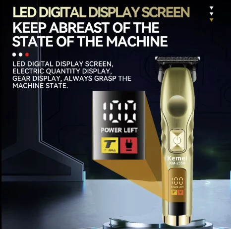 The Kemei KM-2359 hair clipper offers precise and easy trimming with its professional, cordless design and USB charging capability. It ensures high performance for a perfect and comfortable shave, suitable for both personal and professional use.