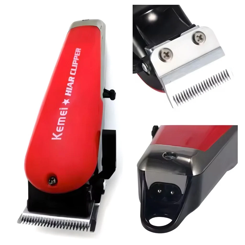 Say goodbye to clippers that pull or snag your hair — the Kemei KM-2609 delivers a fast, precise, and professional trimming experience every time. Its carbon steel cutting head ensures powerful and stable performance, while the full metal body is built for heavy-duty use. Designed for comfort, it offers a firm grip for total control, with a compact, lightweight build for easy storage and portability. Includes 4 guard sizes for hair, beard, and body grooming.