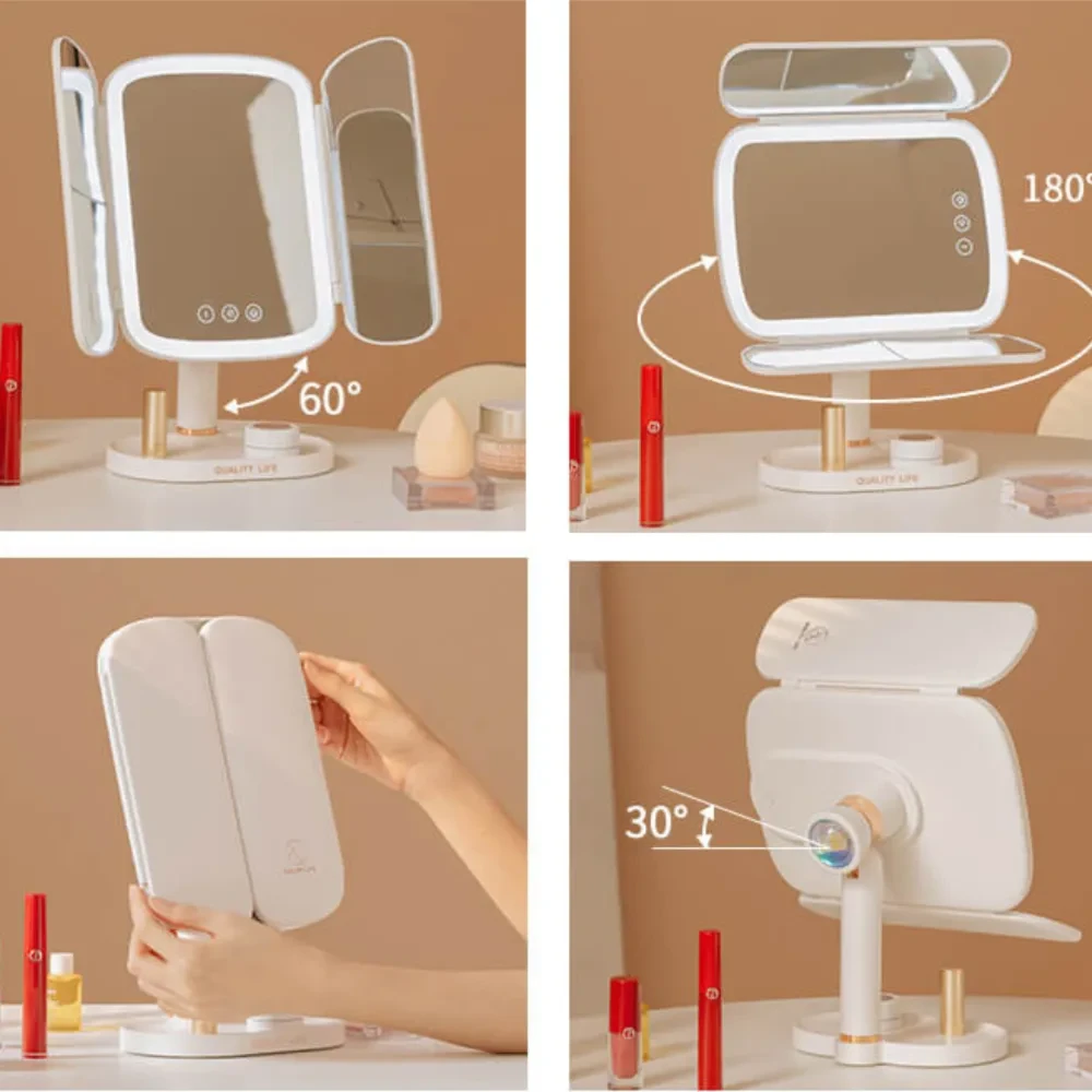 Elevate your beauty routine with our LED Makeup Mirror, meticulously designed to provide optimal lighting and magnification for flawless makeup application and detailed grooming. Featuring a 3X magnification, this mirror allows you to focus on intricate tasks like eyeliner, brows, and skincare with precision. The 360° rotation ensures flexible viewing angles, accommodating your preferences and lighting needs. Adjust the brightness effortlessly via the touch sensor control, tailoring the illumination to match your environment—from soft indoor lighting to bright daylight. Its sleek, portable design makes it an essential companion for both home use and travel, ensuring you always have the perfect lighting and magnification at your fingertips.