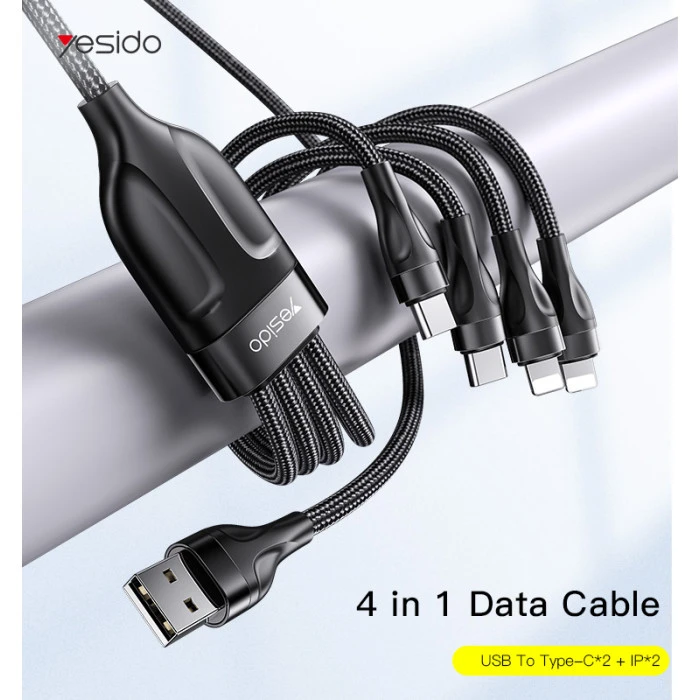 A durable 4-in-1 braided charging cable made for daily convenience—one USB-A cable with four connectors so you can charge multiple devices without carrying different cables. The 1.2m length is perfect for home, office, and car use.
