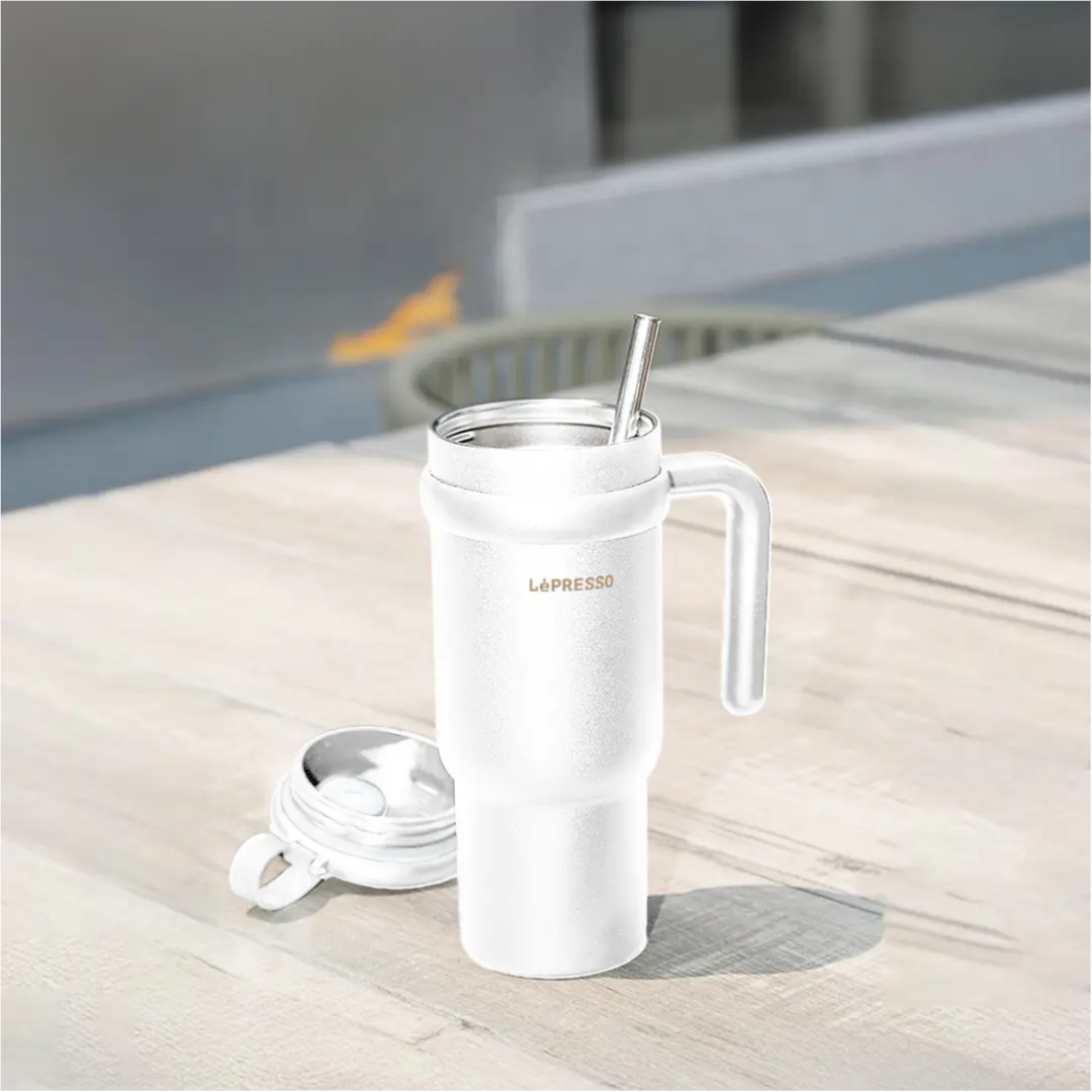Lepresso Thermo Flask Insulated Mug with Stainless Straw 900ml – White