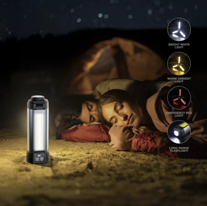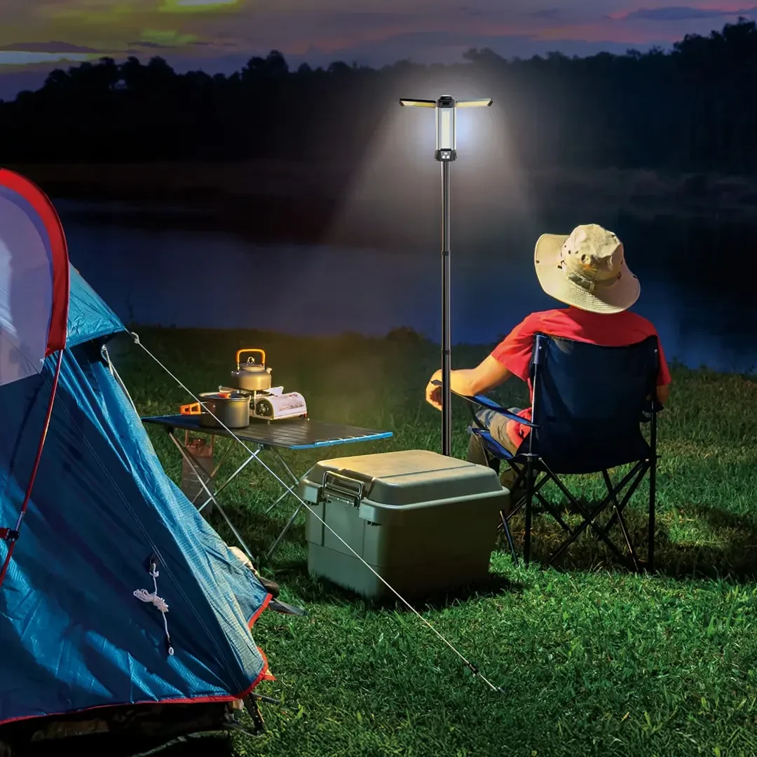 The Green Lion Trio Beam Tripod Camping Light is a heavy-duty outdoor lighting solution built for camping, hiking, fishing, and emergency use. Crafted from durable aluminum and nylon, it delivers powerful illumination with a 2000-lumen output using advanced P50 bulbs and COB LEDs. Its 10050mAh battery provides 4 to 10 hours of runtime depending on brightness mode, and the telescopic tripod extends up to 120cm for elevated lighting. With multiple lighting modes—white, yellow, red, P50 spotlight, and single-panel mode—you can adapt to any environment. The rotating and tilting light panel adds flexibility, while the built-in hidden hook and detachable head give you multiple mounting options. Type-C charging and a digital battery display make usage simple and the emergency power-bank function adds extra practicality during trips.
