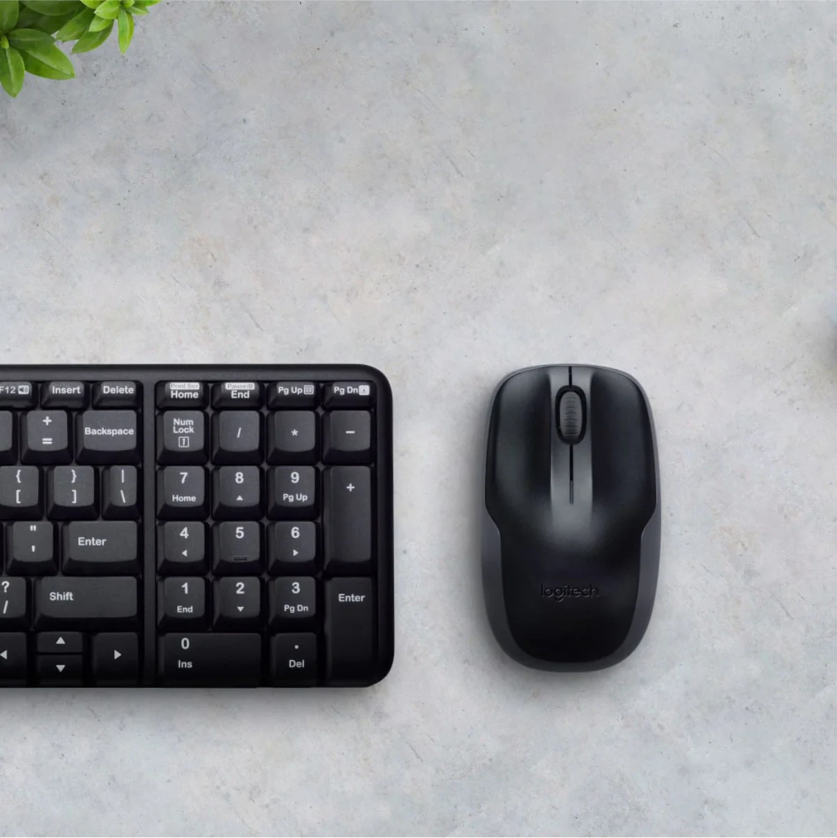 The Logitech MK220 Wireless Keyboard and Mouse Combo offers a compact, reliable, and bilingual typing experience in English and Arabic. Designed to save space without compromising functionality, the keyboard is 36% smaller than standard models but still includes all essential keys, including a full numeric keypad. The 2.4 GHz wireless connection ensures a stable, lag-free experience with a range of up to 10 meters, all through a single nano USB receiver that connects both devices. The keyboard and mouse are built for long-term use, featuring durable keys, 128-bit AES encryption for secure typing, and long battery life—up to 24 months for the keyboard and 5 months for the mouse. The ambidextrous mouse fits comfortably in either hand, making it ideal for home, office, or travel use. With plug-and-play simplicity, just connect the receiver and start working instantly.