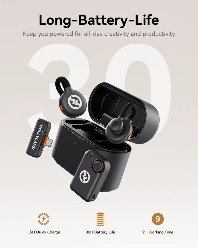 Enjoy a 300-meter (1000 ft) transmission range with anti-interference technology, guaranteeing stable performance in dense environments. Each transmitter and receiver provides 9 hours of operation, while the charging case extends total usage up to 30 hours. Universally compatible through USB-C and 3.5mm analog connections, the Lark M2S works seamlessly with cameras, smartphones (iOS/Android), and computers (Windows/Mac). Easily monitor battery levels, adjust volume, and fine-tune settings through the LarkSound App for total control on the go.