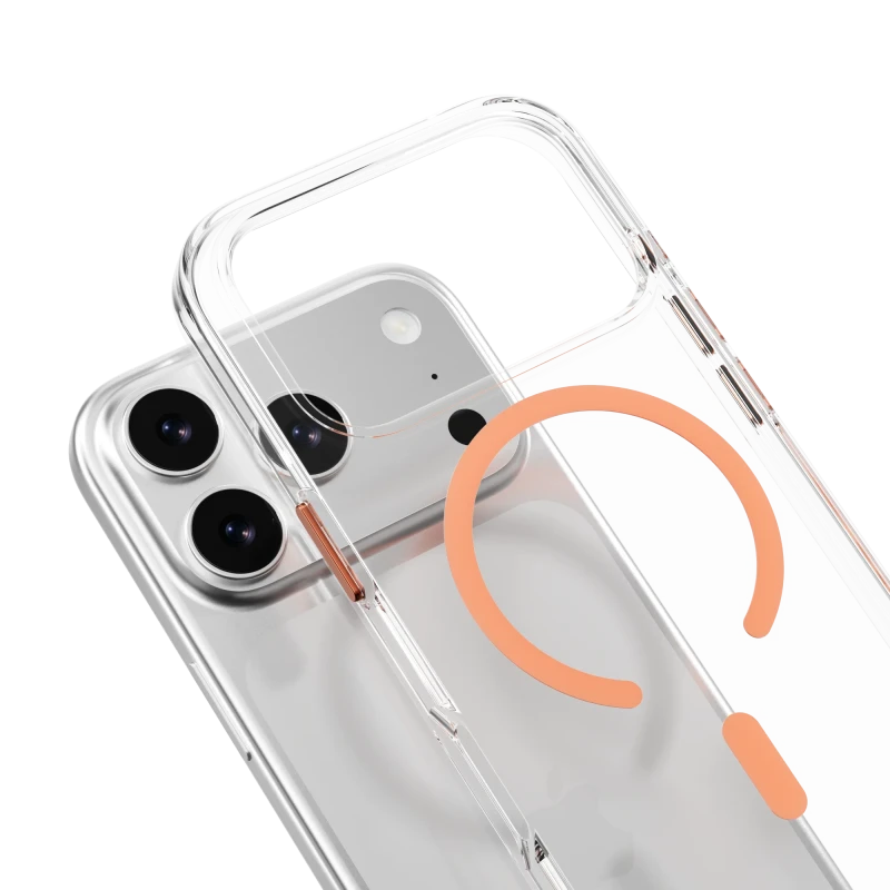 MagEasy Bright M Never Yellowing Case for iPhone 17 Pro - Transparent/Orange Ring