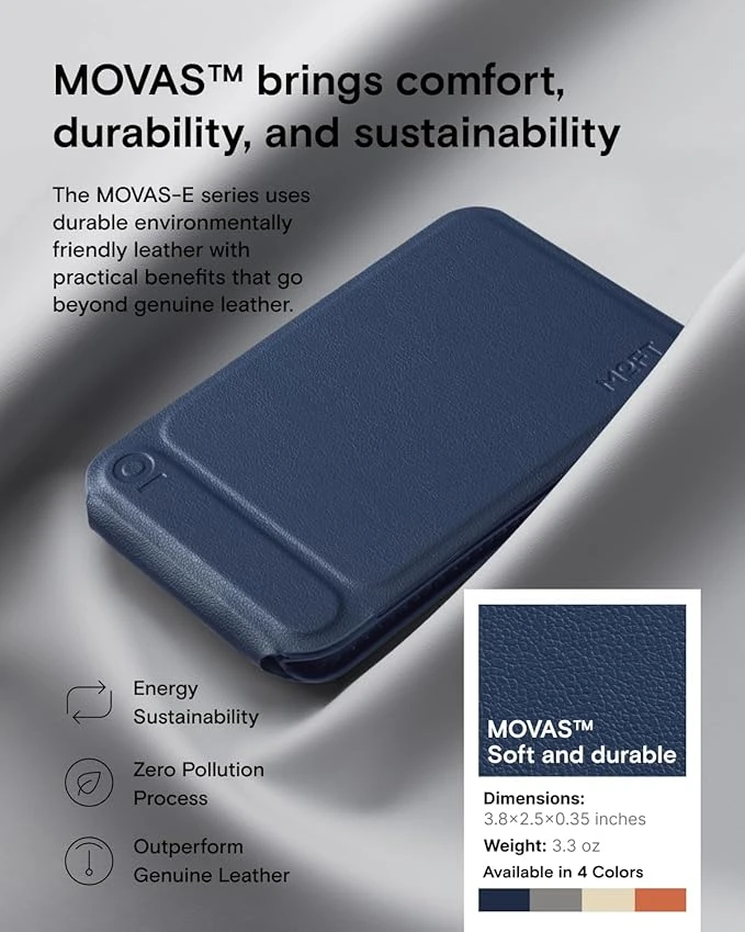 • 3-in-1 versatility and eco-friendly design ? A phone tripod, stand and magnetic wallet in one! Made from MOVAS vegan leather, an innovative water-based material that offers a premium feel while being environmentally conscious. Instantly transforms into an 8" tripod, perfect for stable photos, hands-free video calls, vlogging and FaceTime.