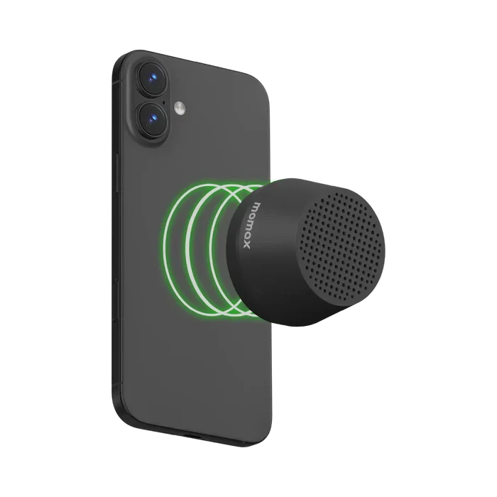 Momax 1-Vibe Go Lite is a compact magnetic wireless speaker made for music on the move. It snaps easily onto metal surfaces or MagSafe-compatible phones, and it even works as an adjustable phone stand for hands-free watching. With TWS pairing, IPX4 splash protection, clear calls, and up to 12 hours playtime, it’s a perfect everyday travel companion.