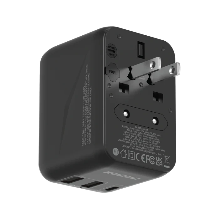 The Momax 1-World 3-Port Travel Adapter 20W is a versatile charging solution designed for global travelers.