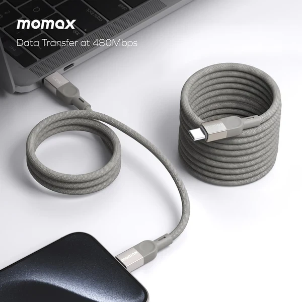MOMAX MAG LINK 100W USB-C TO USB-C MAGNETIC CABLE 1M Titanium