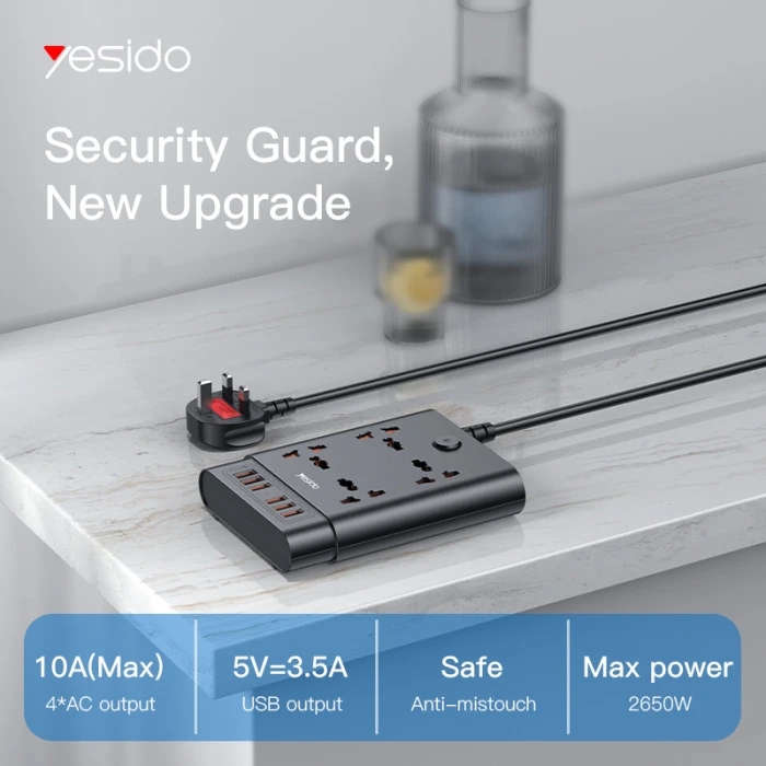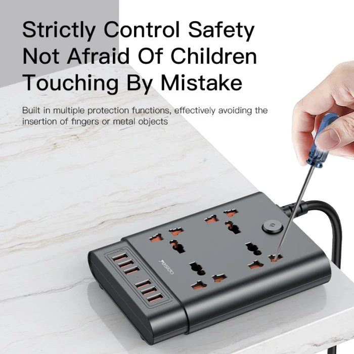 Versatile power strip with 4 AC universal sockets and 6 USB ports (total output up to 3.4A).