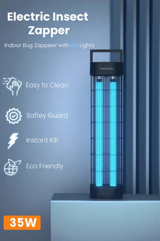 The Moxedo Electric Insect Zapper 35W (EIZ012) is built to keep your outdoor spaces comfortably pest-free with strong, instant insect elimination. Its high-voltage electric grid and bright dual LED lights attract and kill mosquitoes, flies, and other insects over a wide area, making it ideal for gardens, patios, and backyards. With a 35W power rating, it runs efficiently through the night while helping you save on energy. The 100cm power cord offers flexible placement, and the protective ABS housing keeps the shock grid safely enclosed, making it non-toxic and safer for families and pets than chemical sprays. A hidden bottom tray collects insects and can be quickly removed and cleaned with a brush or water, ensuring easy maintenance and long-lasting performance in various weather conditions.
