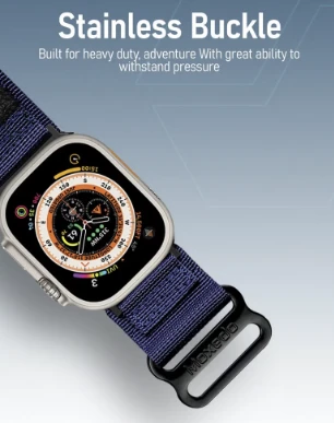 The Moxedo Tactical Sports Rugged Strap is designed for Apple Watch users seeking durability and comfort. Inspired by military tactical gear, it features a woven nylon canvas construction with stainless steel connectors and buckle, ensuring a secure fit during various activities. The breathable, skin-friendly material offers a comfortable wrapping feeling around the wrist. The strap's unique design includes a woven pattern and reflective label, adding a touch of individuality. Its ultra-strength hook-and-loop closure prevents slipping or loosening, making it suitable for sports enthusiasts and everyday wearers alike. Compatible with a range of Apple Watch sizes 44mm,45mm and 49mm.