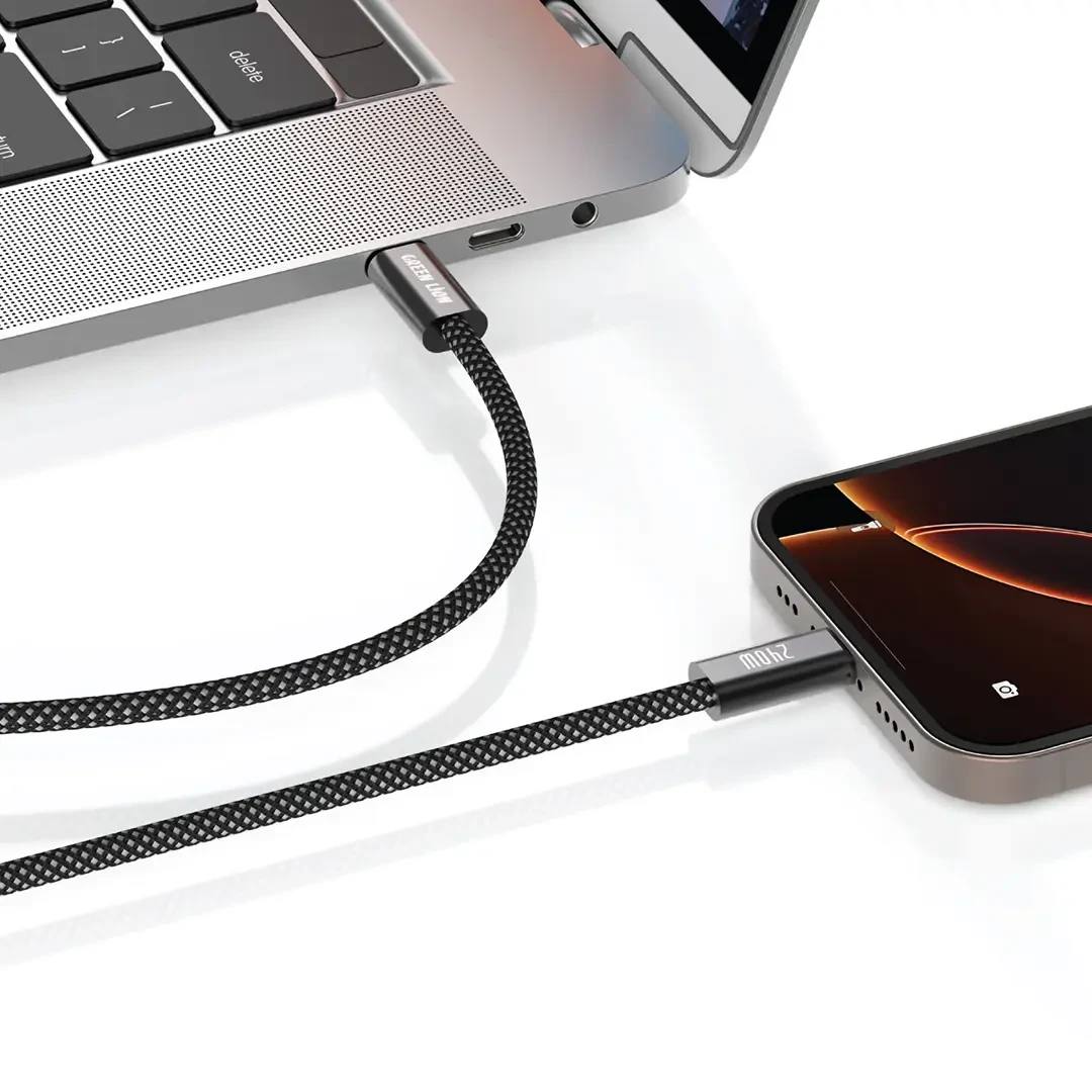 1-meter cable made from durable braided fiber and aluminum alloy.