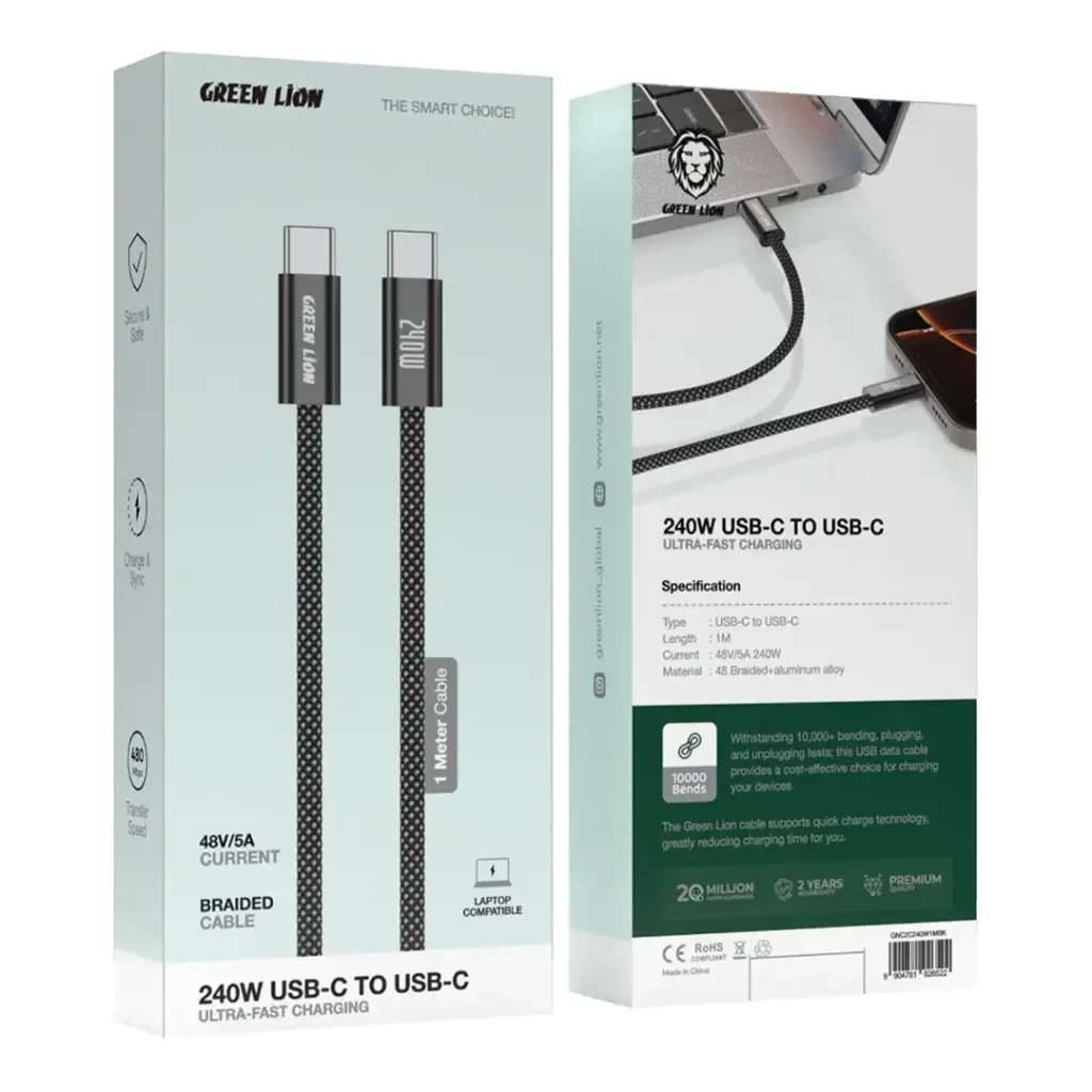 Green Lion 240W USB-C to USB-C Ultra Fast Charging Cable 1M – Black
