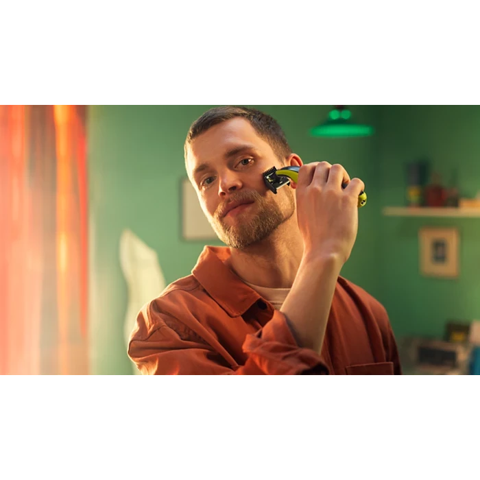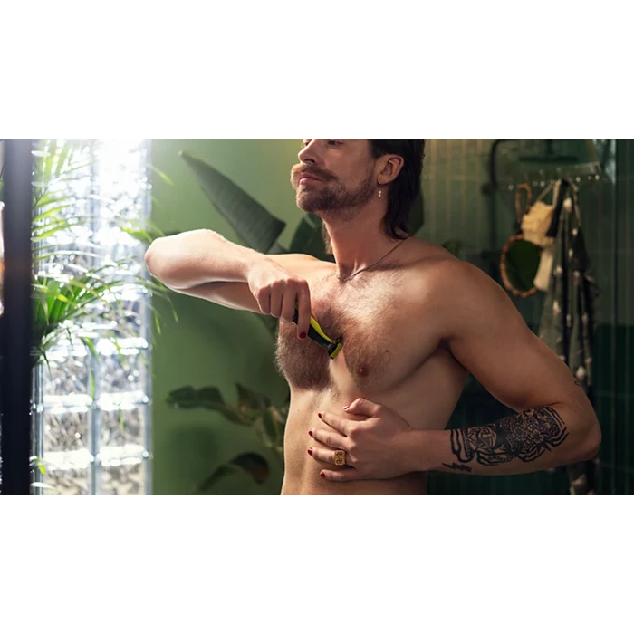 The Philips OneBlade Face and Body Shaver is designed for ultimate versatility in men’s grooming, handling everything from precise facial styling to comfortable body grooming. Its revolutionary OneBlade technology follows the contours of your face and body, delivering a close, smooth shave without irritation. The dual-sided blade makes edging and shaping effortless, while the skin guard attachment provides added protection for sensitive areas. With 3 included stubble combs, you can easily achieve your preferred beard length. Powered by a rechargeable NiMH battery, it offers up to 45 minutes of constant performance after an 8-hour charge, making it a reliable choice for daily grooming.