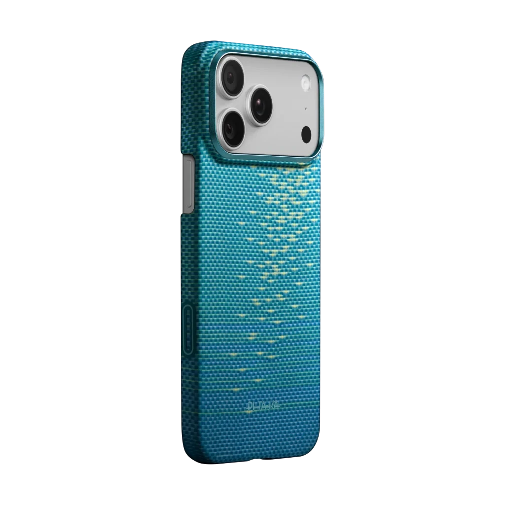 The Pitaka Ultra-Slim Case for iPhone 17 Pro Max is crafted from aerospace-grade aramid fiber, a material 5x stronger than steel yet weighing just a fifth as much. At only 0.93 mm thin and 18.5 g light, it delivers a paper-thin profile that keeps your iPhone Pro feeling original while offering strong protection against scratches and wear. The premium aramid weave gives a silky-smooth, luxurious texture, making it both durable and a pleasure to hold. Designed with PitaTap™ technology, it shields the Camera Control Button with aramid fiber while integrating a hidden capacitive layer that enables responsive tapping and sliding gestures. Fully MagSafe compatible and wireless charging ready, the Lucid Armor blends minimalist aesthetics with cutting-edge functionality, offering protection without the bulk.