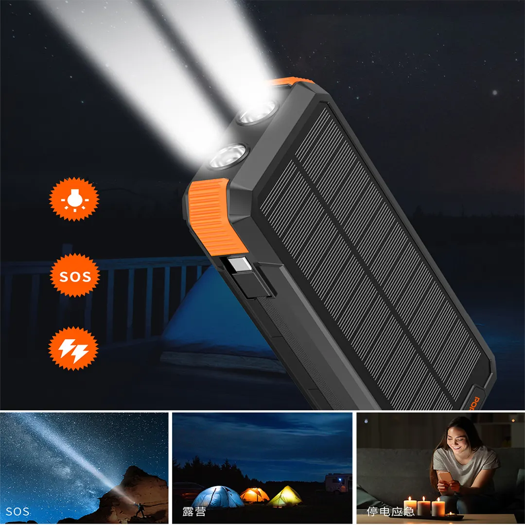 Porodo 20000mAh 4-Panel Solar Power Bank with 3 Detachable Panels & Torch Light (PB070) Black