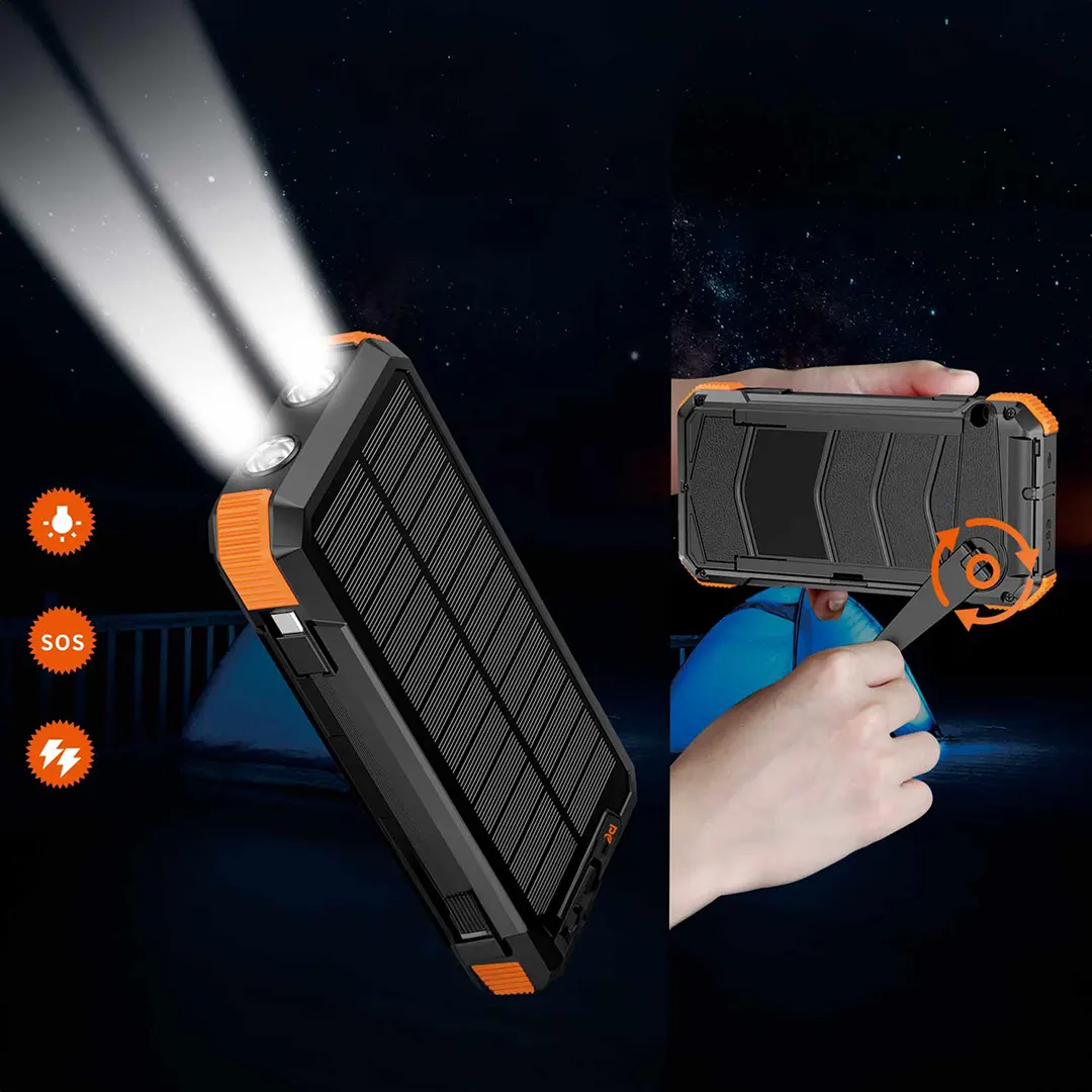 The Porodo Power Bank of 20,000mAh 4-panel solar is one of the most powerful and versatile charging solutions for outdoor or emergency use. This is one of the devices you can count on for backup battery in a huge 20,000mAh battery. It comes in inputs and outputs, including Type-C, Micro USB, and USB-A. This device can be fast charged up to 20w and supports PD of 45 watts. You can recharge the power bank through sunlight with a built-in 4-panel solar system, which is excellent for outdoor use. This gadget contains features such as hand crank charging, a flashlight in multiple modes, and removable cables. It is ideal for all rough conditions as it holds IP45 against water and operates between temperatures of -10 0 C and 40 0 C.