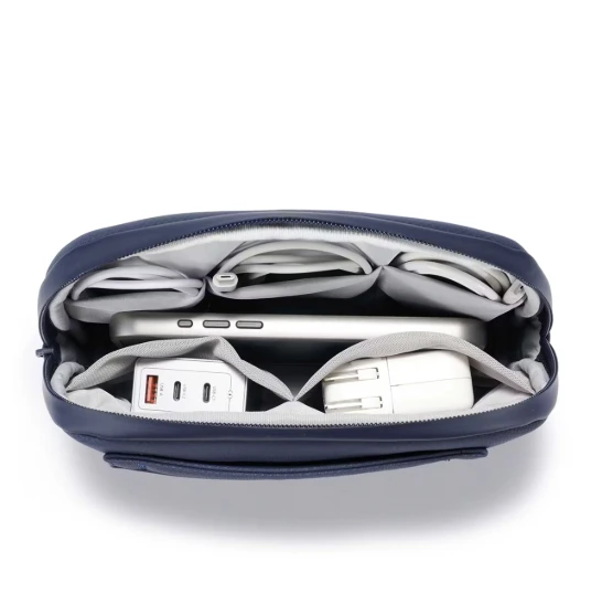 The Porodo Lifestyle Geneva Tech Accessory Pouch is a compact yet spacious 1L organizer designed to keep your daily tech essentials in order. Made from high-quality PU material, it is stylish, durable, and resistant to daily wear. Its water-resistant design provides extra protection, keeping your gadgets safe during light rain or spills. The built-in cable organizer ensures tidy storage for cables, chargers, power banks, and small accessories, making it easy to access everything you need. With its easy-carry handle, this pouch is perfect for travel, commuting, or simply staying organized at home. A smart and stylish must-have for tech lovers.