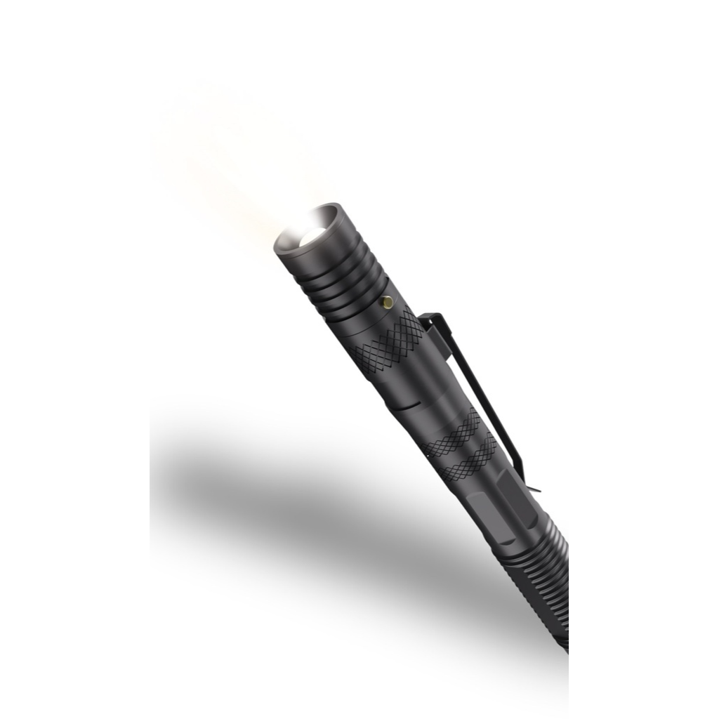 Enjoy the versatility of the Porodo Multi-Functional Tactical Pen. This tactical pen is a writing instrument that also functions as a flashlight, whistle, screwdriver, bottle opener, and safety hammer. It integrates six important tools seamlessly. The energy-efficient LED light with an adjustable beam of 25 lumens ensures that you are never left in the dark. With a maximum operating time of three hours, this device is ideal for professionals, regular users, and outdoor enthusiasts alike. Flashlight / Pen / Whistle / Screw Driver / Bottle Opener / Safety Hammer