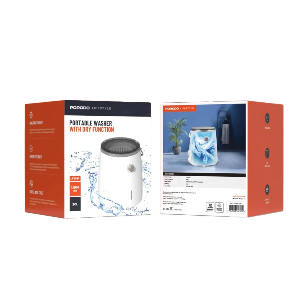The Porodo Portable Mini Washing Machine with Dry Function offers ultimate convenience with its compact size, perfect for small spaces or travel use. Featuring a 20L inner drum and a 1.5kg load capacity, it’s ideal for light laundry. The 90W washing and 110W drying functions operate together for efficient performance, while the gentle wash cycle protects delicate fabrics. With a wide voltage range of 110–240V and 50Hz frequency, it works anywhere you go.