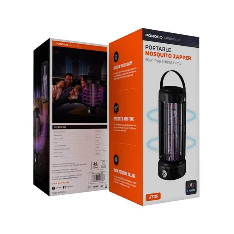 The Porodo Lifestyle Portable Mosquito Zapper is the ideal method to effectively and safely remove insects. The product gets rid of mosquitoes fast and safely. It works with a 3000V insect-killing voltage, avoiding harmful chemicals. The built-in UV LED bulb serves as a 360° night light to brighten your area and attract insects for efficient capturing. It’s great for indoor and outdoor use. Its 2000mAh battery lasts up to 4 hours on one charge. The 4.5W rated power guarantees peak performance, and the Type-C charging interface makes recharging quick and easy. This zapper provides a safer, eco-friendly option to regular mosquito killers. It’s designed to be effective and non-toxic. Porodo Lifestyle Portable Mosquito Zapper is easy to maintain and offers dependable mosquito control anywhere you need it, thanks to its 5V/1A input.