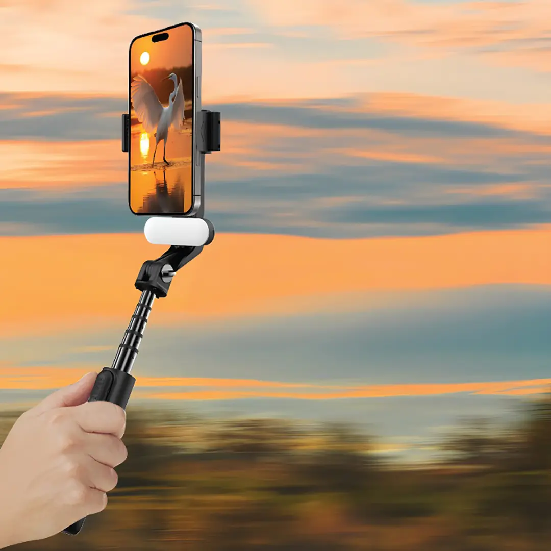 Porodo QuadBase Gimbal Stabilizer is the ultimate go-to for capturing smooth, professional-grade video with ease. Made of heavy-duty ABS and Aluminum, this stabilizer will last forever. It includes a variety of adaptable mount holders of 108.7 - 150.4mm to hold a variety of devices. Its folded length of 180mm extends to 790mm for maximum flexibility while filming. Being charged with a 400mAh Pan Tilt battery and a CR1632 remote control battery, this gimbal supports 3-4 hours of continuous video shooting. This gimbal contains Bluetooth 5.2 to offer smooth connections and comes in multiple modes like Selfie Mode, Sports Mode, and Dream Space Mode for stable shots of all your photo captures. T he Quad-Base Tripod and smart stabilization provide stable footage, while the detachable light provides more convenience for use in low-lit settings. Features : Quad-Base Tripod Intelligent Stabilization Remote Control Detachable Light