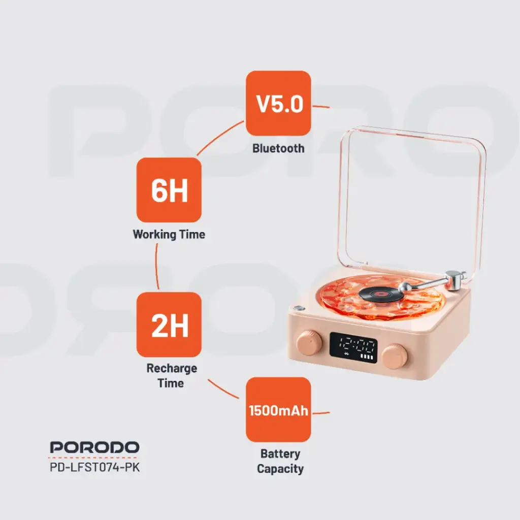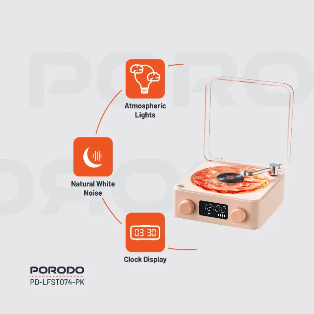 Porodo White Noise Portable Bluetooth Speaker with Clock Display (LFS074) Pink