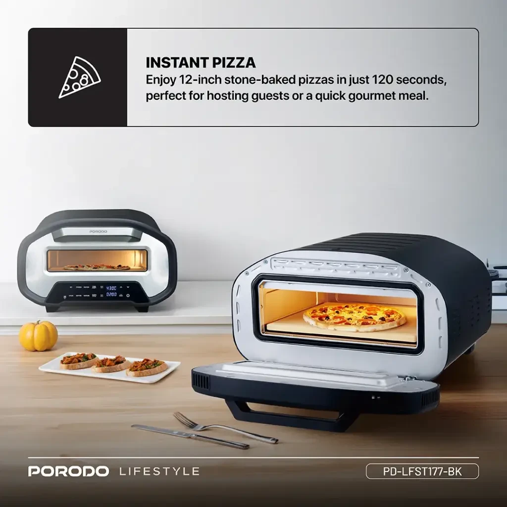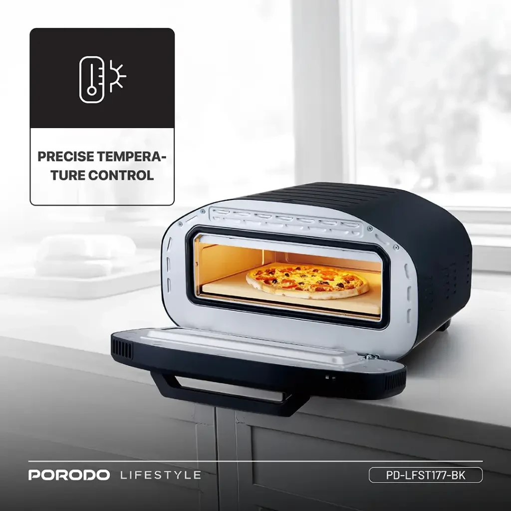 The Porodo 12" Indoor Electric Pizza Maker brings true restaurant-style pizza baking straight into your home. With a powerful 2200W heating system and an impressive temperature range of 80–430°C, it ensures perfectly cooked pizzas with your preferred level of crispiness every time. The 12-inch pizza stone distributes heat evenly for that authentic crispy crust, while the built-in 1–60 minute timer allows you to customize cooking based on your recipe. Interior lighting lets you monitor your pizza without opening the lid, and the ultra-fast heating system can bake a full pizza in just 120 seconds. With a spacious internal cavity measuring 350 × 330 × 106 mm, the appliance fits standard pizzas comfortably. Sleek, modern, and efficient, this pizza maker is a must-have for pizza lovers who enjoy quick snacks or full homemade meals with perfect results.