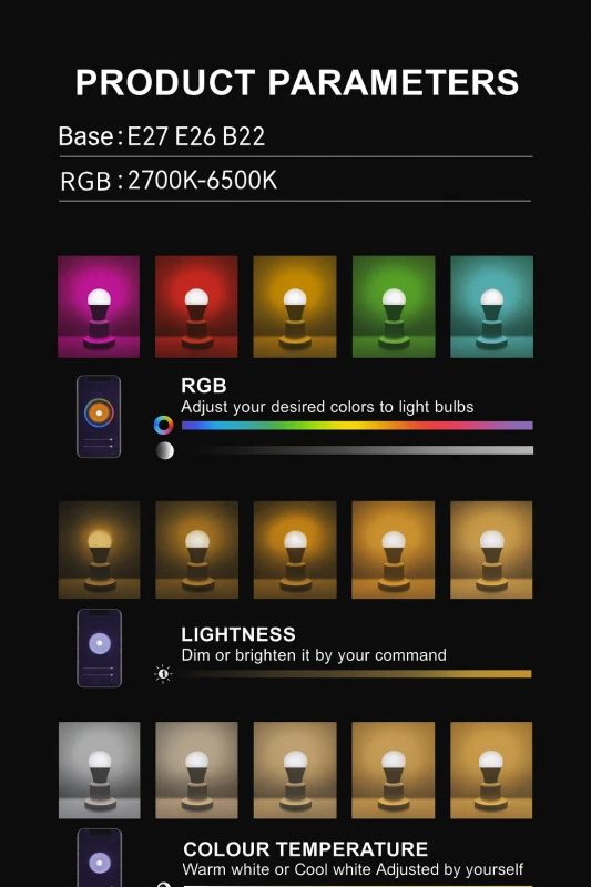 Compatible with WiFi networks, the Smart LED Bulb connects seamlessly through the Tuya Smart or Smart Life App, making your lighting experience smarter, simpler, and more colorful.