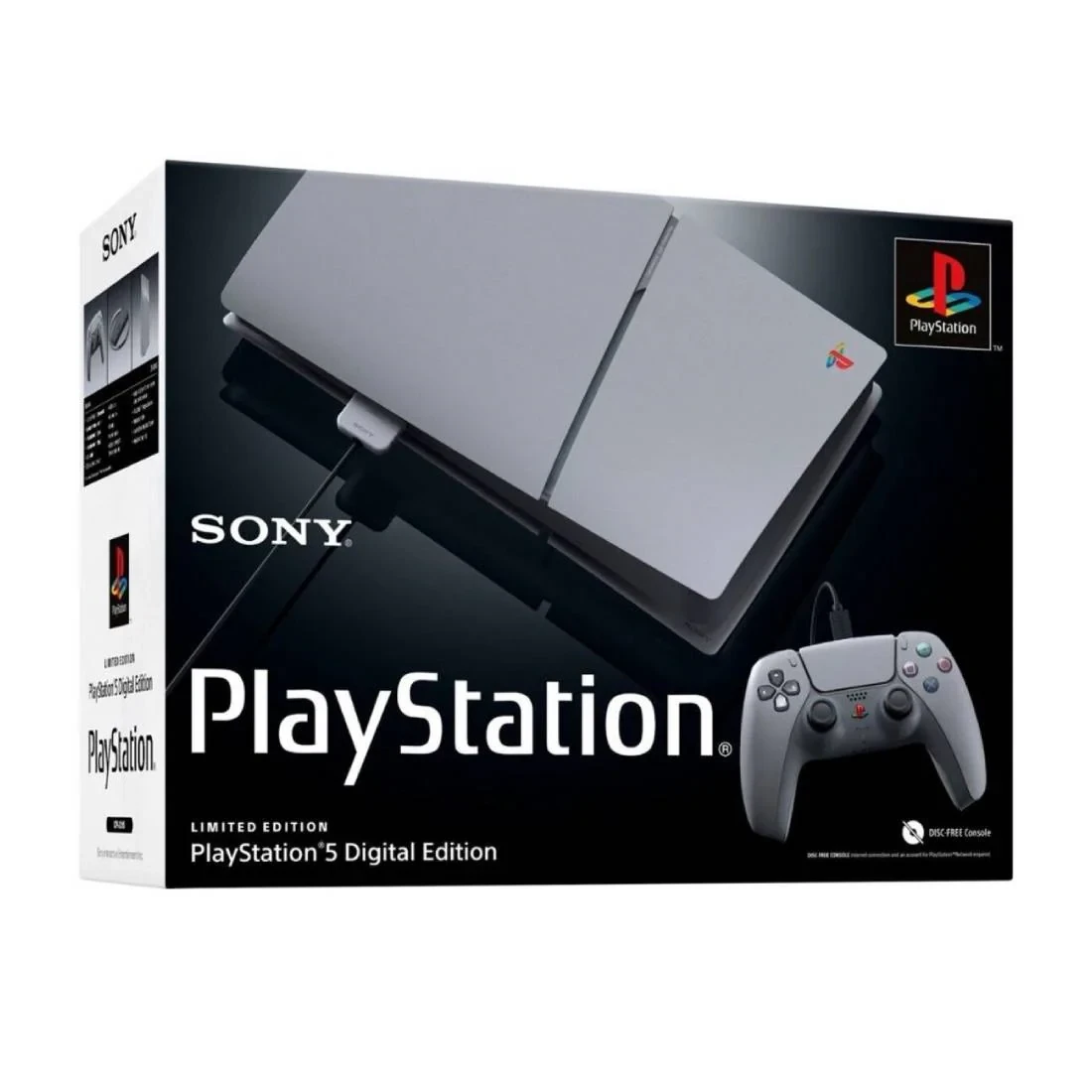 Celebrate three decades of PlayStation history with the PS5 Digital Edition – 30th Anniversary Limited Edition bundle. This disc-free console features a nostalgic grey and charcoal design inspired by the original PlayStation®, and includes a limited edition DualSense controller and vertical stand. The high-speed 1TB SSD delivers faster game loading and smoother play. With its powerful custom CPU, GPU, haptic feedback, adaptive triggers, 3D audio support, and output up to 4K@120Hz (and 8K compatible), it offers deeply immersive gameplay. The bundle also includes retro-style collectible items like cable ties, posters, and a paperclip collector’s item, making it both a powerful gaming machine and a nostalgic piece of PlayStation memorabilia.