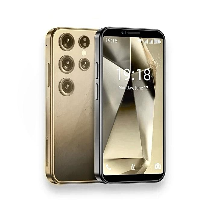 Soyes S25 Ultra Mini Smartphone Special Edition 3.3-inch touchscreen, dual SIM 2GB RAM 16GB ROM, 1000mAh, 0.3 MP + 2 MP camera, Android 8.1 & ultra slim phone. 3.3-Inch Touchscreen: Enjoy clear and responsive touch navigation in a compact form factor. Dual SIM Capability: Manage personal and work contacts seamlessly with dual SIM support. Efficient Performance: Powered by 2GB RAM and 16GB ROM, running Android 8.1 for smooth multitasking Essential Features for Everyday Use: 3G connectivity, 1000mAh battery, and front (0.3 MP) & rear (2 MP) cameras make it an affordable, entry-level mobile device.