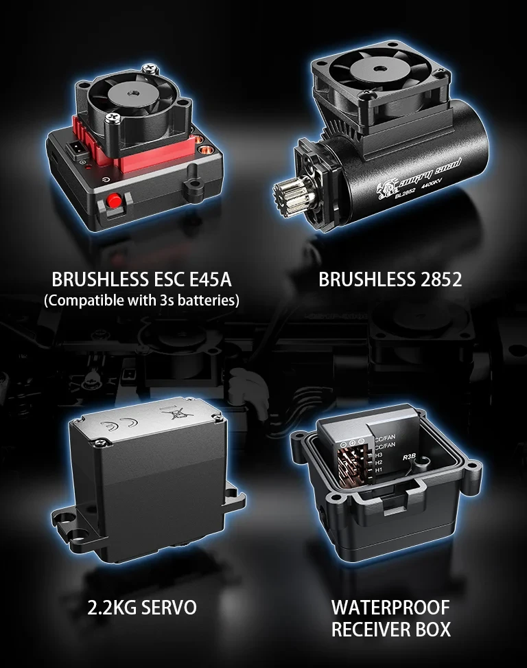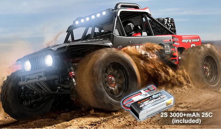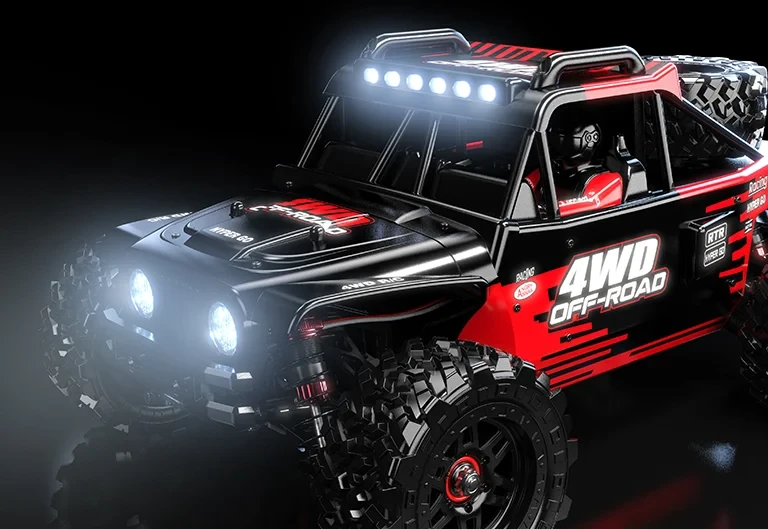 The MJX Hyper Go 14209 is a high-performance 1/14 scale 4WD brushless RC truck designed for both thrill and durability. With a powerful brushless 2852 motor and 45A ESC, it achieves speeds up to approximately 43 km/h. It includes a 7.4V 3000mAh Li-Po battery for about 15 minutes of runtime, and is fully remote controlled with a range of up to 120 meters. The truck features all-metal drivetrain parts, adjustable metal hydraulic shocks, and a sturdy build that excels at off-road driving.