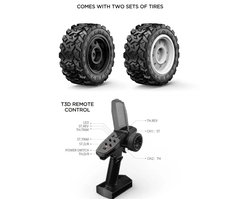 Includes 2S 3000 mAh battery, USB charger & spare tires